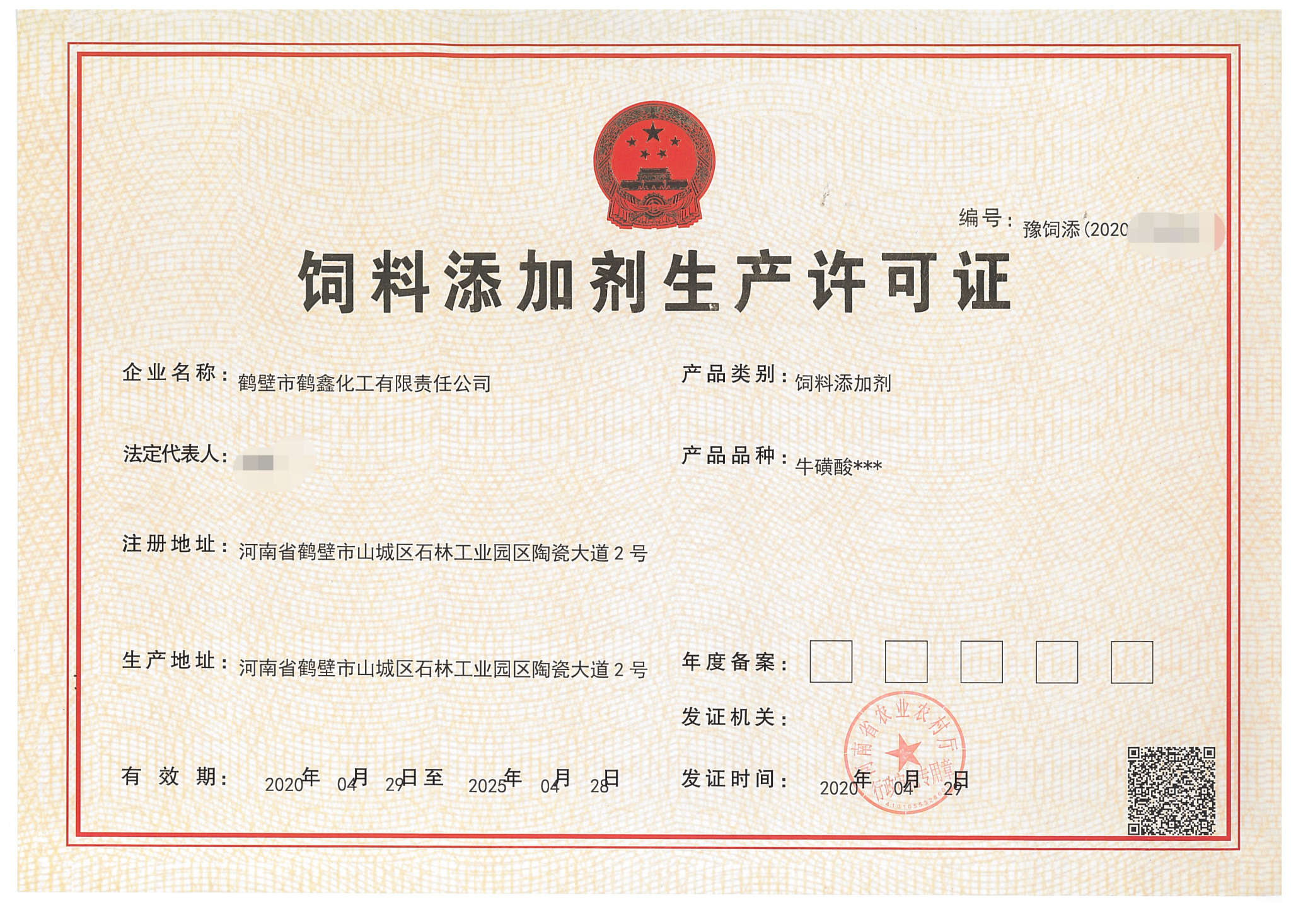 單位名稱:鶴壁市鶴鑫化工有限責(zé)任公司